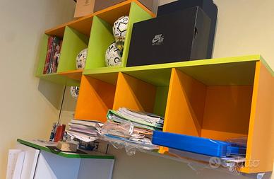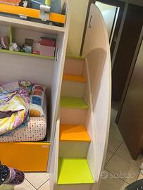 Causa cambio camera, vendo letto a castello Moretti compact con tutti i suoi accessori. Il letto sopra è reclinabile per essere più comodo nel rifarlo. Ultimo scalino leggermente segnato(vedi foto). Sotto il letto ci sono 2 cassettoni xon le ruote. C'è anche un set di colori originali per ritocchi. Disponibili materassi tenuti bene a 80 € cadauno. Se avete bisogno di altre foto, contattatemi. ritiro a mano.