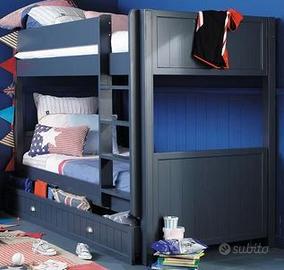 Letto a castello newport grigio gia smontato con cassettone per eventuale terzo letto in buone condizioni completo di due materassi vedi ultima foto per le misure