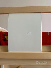 Letto Superiore: barriera di sicurezza fissata solidamente al longone del letto (piccolo difetto) + spondina secondaria in ferro. Testiera rifinita con un profilo curvo che riprende il design della scaletta.
