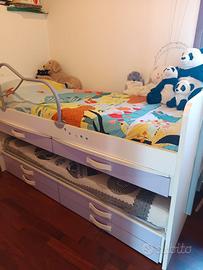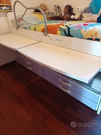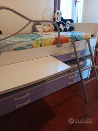 Entro fine Aprile!! Letto a castello di piccole dimensioni, mondo convenienza. Ha 6 cassetti, due ripiani estraibili ed utilizzabili come scrivania, una scaletta. Il letto sotto è estraibile comodamente. Vendo insieme ai due materassi Ikea.
