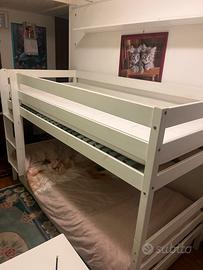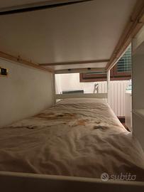 Letto a castello 1 piazza + materassi. Struttura in legno massello con due cassetti e una mensola. Materassi semirigidi. Necessaria autonomia nel venirselo a prendere.