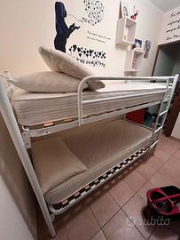 Letti a castello in metallo bianco, 2 materassi alti 16 cm inclusi. Misure : 80 x 200