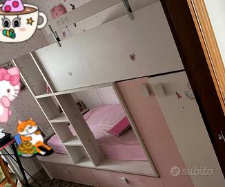 Letto a castello per bambini con armadio 271x150cm rosa bianco