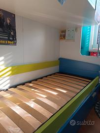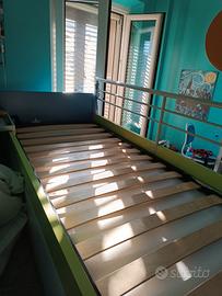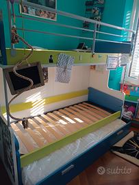 Vendo letto a castello con scala contenitore. la struttura ha anche un capiente vano contenitore nel pianale di accesso al letto superiore. il letto a castello è composto di 3 letti, il superiore di dimensioni 80x200 i due inferiori 80x190. il divano inferiore è estraibile e rifinito. può quindi essere utilizzato eventualmente come letto separato per una seconda stanza. aggiungo anche un materasso in buone condizioni. Lo smontaggio ed il trasporto sono a carico dell' acquirente