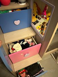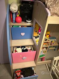 Vendo letto a castello ideale per la stanzetta dei bambini, pratico e salvaspazio. La struttura è composta da: * un letto singolo superiore * un letto singolo inferiore * un secondo letto estraibile sotto quello inferiore Perfetto quindi per ospitare fino a tre bambini o per avere sempre un posto letto in più all’occorrenza. Il letto inferiore estraibile si richiude facilmente sotto la struttura quando non in uso. Le reti sono incluse nel prezzo, mentre i materassi non sono compresi. Struttura solida e in buone condizioni. NO SPEDIZIONE O TRASPORTO Per maggiori informazioni o foto, non esitare a contattarmi!