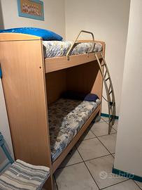 Vendo letto a castello, come da foto, comprensivo di reti a molle e materassi. Altezza 165-167cm, Profondità 90cm, Lunghezza 190-200cm. Ben conservato in quanto utilizzato solo di rado nel weekend. No spedizione. Ritiro a mano, già smontato, a Jesolo (VE) lido in zona Ospedale. 120 Euro.