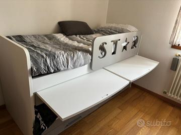• Scrittoio integrato: Dispone di due ampi ripiani estraibili che fungono da comoda scrivania per studiare o giocare.