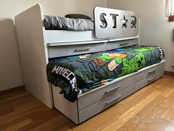 Vendo splendida struttura letto a castello dal design moderno e funzionale, perfetta per ottimizzare lo spazio nella cameretta. Il letto è estremamente versatile e ricco di scomparti.
