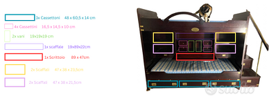1x Scrittoio a scomparsa completo di cassettini, vani e scaffali (vedi foto per misure)