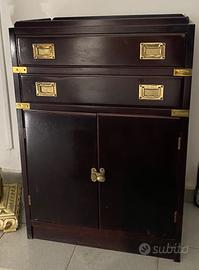 Mobilia Originale La Vecchia Marina anni '70 in legno Mogano Massello con maniglie, chiavi e serrature navali in oro ottone.