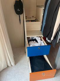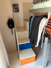 Letto a castello, scalette e mobile contenitore