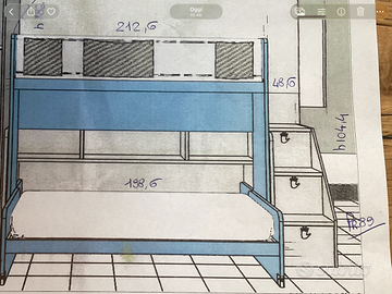 Letto a castello scorrevole, con protezione, scaletta con mobile contenitore, compresi materassi, pari al nuovo. Mis. Lungh 260 cm. H 185 cm. Richiesta € 600. Ritiro e smontaggio a carico dell’acquirente. Si richiede max serietà, grazie