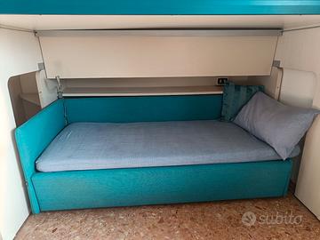 Il letto superiore può essere “chiuso”, facendo scomparire il piccolo corridoio laterale.