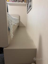 Letto a castello scorrevole con due cassetti in basso. Completa il tutto una scaletta di tre gradini che fa da cassettiera. Il letto e la cassettiera sono di doimo city line