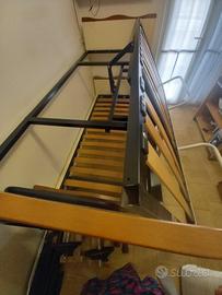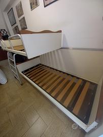 Il letto di sopra è scorrevole grazie al carrello fissato al muro, inoltre è anche ribaltabile per facilitare il rifacimento del letto.