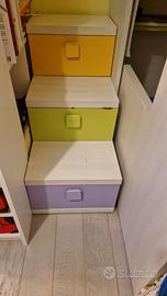 Letto a castello scorrevole marca Doimo Cityline modello Roy. Chiuso occupa poco spazio, aperto facilita il rifacimento e il cambio lenzuola creando pratico corridoio di accesso al letto superiore.