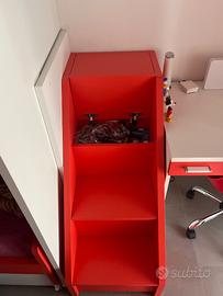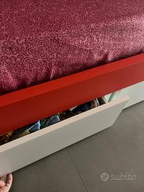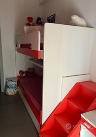 Vendo letto a castello completo di due letti singoli con rete in doghe di legno con scala che integrata di cassetti interni mai stata usata tutto nuovo la vendo xke il mio bambino è piccolo nn è indicato x lui questo tipo di tipologia il letto è estraibile quello di sotto e ha due cassetti quello di sopra invece si estende x facilitare la salita sul letto e x rifarlo il costo è di 1000 euro trattabile colore rosso e bianco
