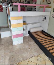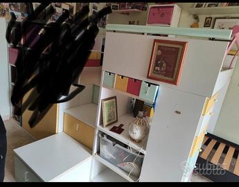 vendo struttura in legno di letto a castello come in foto. possibilità di avere anche piano soppalcato e libreria con scrivania apribile