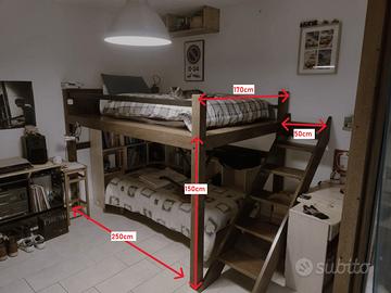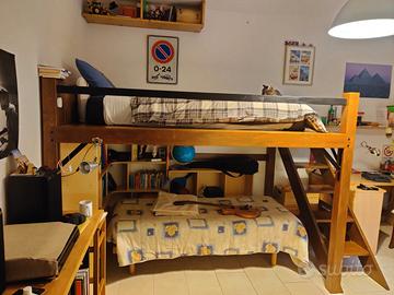 Ampio letto a castello/soppalco per materasso matrimoniale.
