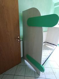 Letto a castello color faggio e verde mela. Molto solido e buonissime condizioni. Completo scaletto parapetto, posti letto standard. Ingombro 210 - 95 - h 175