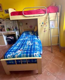 Vendo letto a castello con due letti completi di materassi e armadio. Misure: Altezza 1,80 m - Larghezza 2m - Profondità 2.10m Trasporto a carico dell'acquirente. Prezzo trattabile