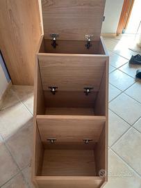 Vendo letto a castello smontato compreso di scale contenitori e comodino. Ha qualche sbeccatura nel legno, ha della colla di adesivi su una parete e un adesivo effetto lavagna (il lato nero in foto). È alto 175 cm e lungo 210 cm. Per qualsiasi dubbio, contattatemi.