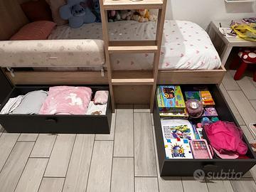Vendo cameretta (255x109 )cm pari al nuovo usata pochi mesi , componibile in diversi modi , presente di piccola cabina armadio con appendiabiti.