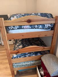 Letto a castello legno massiccio, utilizzabile anche come 2 letti singoli. 200x99