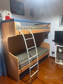 Vendesi letto a castello, con terzo letto apribile a cassetto. Si vende compreso materassi.