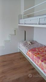 Letto a castello con doghe in legno. Parte sopra quasi mai usata. Ha 6 anni e pagato quasi il triplo. Pari al nuovo. Fatto su misura, ditta del trevigiano, perciò ottimo prodotto. Venduto senza materassi.