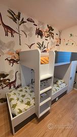 Vendo letto a castello con 3 posti letto (Materassi non inclusi) I letti sono 90×200cm MISURE ingombro: 107cm Altezza: 165cm Lunghezza: 255cm Unico difetto è sulla scala (vedi foto) Già smontato ritiro a Spresiano (TV)