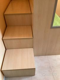 Vendo comodissimo letto a castello con rete a doghe e scala a cassettoni salvaspazio, in ottime condizioni, marca ZALF. Il piano inferiore presenta una capiente libreria. Al piano superiore si accede in tutta sicurezza tramite una scala con 3 gradini (al cui interno sono presenti 2 contenitori).
