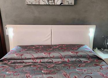 Letto contenitore matrimoniale in ecopelle sfoderabile con luci led e molto capiente. Unica pecca l' ecopelle si sta sgretolando in alcuni punti, potete farlo rifoderare se volete. Chi è interessato mi contatti ritiro a domicilio non faccio spedizioni...(il letto si trova già tutto smontato)Prezzo €120