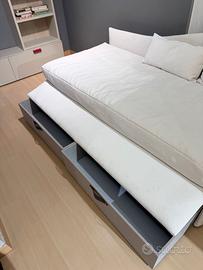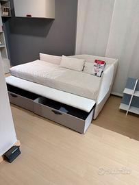Completo di rete doghe, materasso a molle, rivestimento cotone canvas bianco completamente sfoderabile, con cassettoni su ruote. Prezzo listino 1.960,00, nostra proposta euro 980,00 IVA inclusa. Eventuale trasporto da concordare a parte.