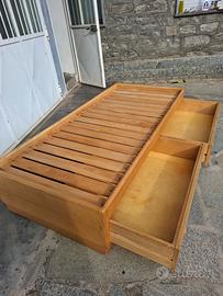 letto singolo misura esterna 89 per lunghezza 190 con 2 cassettoni capienti .in ottimo stato . possibile trasporto
