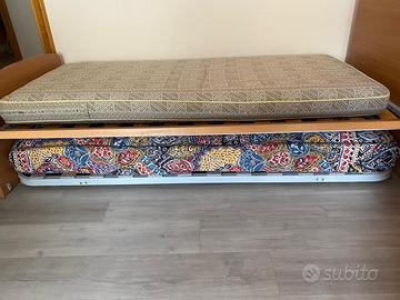 Doppio letto singolo. Letto singolo in legno, ideale per camerette o stanze degli ospiti. La struttura è solida e in ottime condizioni. Il vero punto di forza di questo letto è il secondo letto estraibile posizionato nella parte inferiore, perfetto per ospitare amici o parenti in modo rapido e senza ingombro quando non utilizzato. Dettagli principali: • Tipologia: Letto singolo con letto estraibile (tipo "letto a scomparsa" o "letto ospite"). • Stato: Usato, tenuto molto bene e perfettamente funzionante. • Struttura: Legno resistente, design semplice e versatile. • Accessori inclusi: Rete a doghe in legno, solida e confortevole.