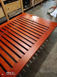 Struttura letto 1 piazza e mezza in pino massiccio a doghe avvitate; pesante, solido ed condizioni perfette. Costruito su misura e non di fattura industriale. Ideale anche per essere trasformato in grande tavolo da esterni. Misure: 234 cm 132 cm 37 cm