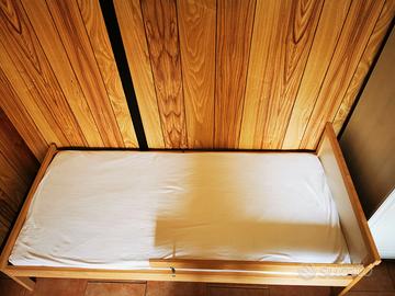Letto a doghe misura bambino / ragazzo in ottime condizioni estetiche. E' completo di materassino e mini sponda. Pratica soluzione salvaspazio per aggiungere un posto letto in camera. Viene proposto eventualmente scontato in abbinata con coppia di comodini in altro mio annuncio Misure: 167 x 76 Primo contatto solo via WhatsApp o Messaggi Subito. Vendita tra privati regolamentata da clausola "visto e piaciuto" che esclude ogni tipo di garanzia. Il prodotto viene venduto nello stato di fatto documentato da foto.