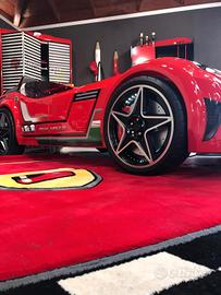 vendo letto a forma di auto/ferrari Sport in ABS antibatterico, esternamente lucido, idrorepellente, facile da pulire. È rivestito in similpelle per dare protezione al bambino. Effetti luce e suoni tramite il telecomando, illuminazione a LED montata sui cerchi e nella sottoscocca.