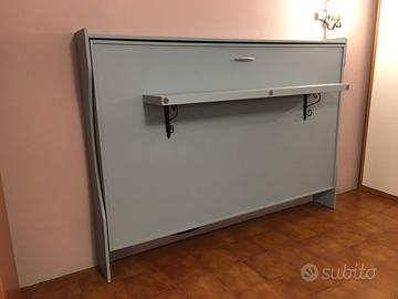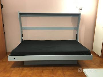 letto a scomparsa 1 piazza e mezzo completo di materasso ortopedico nuovo, telaio in legno naturale colorato e pompe per una apertura/chiusura confortevole. comodissimo in caso di poco spazio, per gli ospiti, per la seconda casa, ecc...