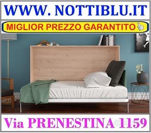 Letti a scomparsa a Roma e tavolini trasformabili Showroom Notti Blu: Via Prenestina 1159 – 00132 Roma a soli 300 metri dal GRA Letti a scomparsa a Roma by Notti Blu PROMOZIONE DEL MESE: Letto Rudy 1 piazza e 1/2 € 1890 – Lo paghi in 12 Rate da € 157 a TASSO ZERO Mobile letto a scomparsa salvaspazio mod. Rudy 1 piazza e 1/2 con apertura orizzontale. Davanti la facciata del mobile letto c’è un piano scrivania abbattibile L 165 x P 50 – spessore 1,9 cm. Dimensioni del mobile letto chiuso: L 214,5 x P 36,2 x H 142,3 cm. Dimensioni del mobile letto aperto: L 214,5 x P 145 x H 142,3 cm. Dimensioni del materasso: L 120 x 195 x H max 20 cm (Omaggio) Per saperne di più recati senza indugio presso il nostro Showroom di Roma in Via Prenestina 1159 – 00132 Roma dove troverai tantissime soluzioni di mobili trasformabili salvaspazio. Letti a scomparsa a Roma e tavolini trasformabili salvaspazio by Notti Blu di Conti Mario