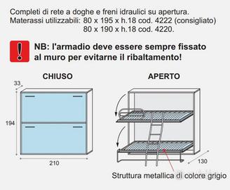ESCLUSO DI MATERASSI COMUNQUE DISPONIBILI A RICHIESTA , MISURA CONSIGLIATA 80x190xH.18