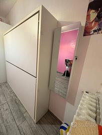 Letto a castello a scomparsa, per ambienti piccoli. Mobile della clei, con luce notturna. Ideale per chi non ha tanto spazio in casa ma ha bisogno di due letti, usato pochissimo. Pari al nuovo! Misure L 217 cm H 194 cm.
