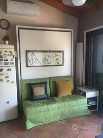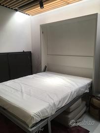 Letto a scomparsa con divano due posti da una piazza e mezzo, cm 160 x cm200, adatto per un monolocale o per un letto mateimoniale di servizio. Vendo per sostituzione con divano normale. Prezzo poco trattabile. Solo per veri interessati