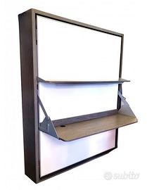 Il letto a scomparsa verticale Harry matrimoniale, è un vero e proprio ufficio o studio di giorno, grazie alla grande scrivania e mensola. Con un gesto si trasforma in un letto matrimoniale comodo per materasso 160x200 cm alto fino a 22 cm.