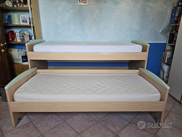 2 lettini di cui 1 con ruote per occupare meno spazio quando richiuso. La sponda di protezione è compresa. Materassi a parte. Prezzo leggermente trattabile. Legno di ottima qualità in frassino.