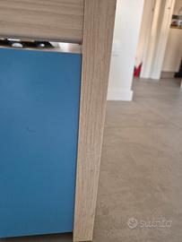 Letto singolo a scomparsa modello Alfa di Mondo Convenienza, colore rovere/blu avio. Comprato due anni fa e utilizzato solo per gli ospiti in poche occasioni, vendo per trasloco. Ritiro a mano a Roma Monte sacro/Talenti.