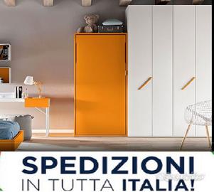 Per ospitare gli amichetti possiamo scegliere un letto salvaspazio: una soluzione pratica e colorata. Grazie alla sua struttura fornisce un posto letto utilizzabile anche negli spazi più ristretti. Il letto viene proposto nella finitura Arancia, è possibile però personalizzarlo scegliendo tra un'ampia gamma di colori.