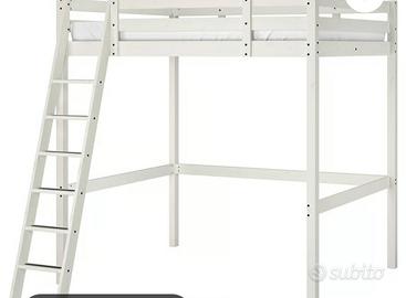 Letto a 1 piazza e mezza legno di pino mordente bianco 140x200 completo di materasso. Usato solo 3 mesi. Come nuovo