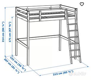 Letto a soppalco 1 piazza e mezza pino mordente bi